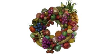 This was the first non-holiday wreath I made, and I was hooked. It took a long time to collect all the pieces of fruit, but not as long as it would have taken to make them all. I just kept thinking of all the grannies and families who must have spent hours and hours putting the sequins on each piece.